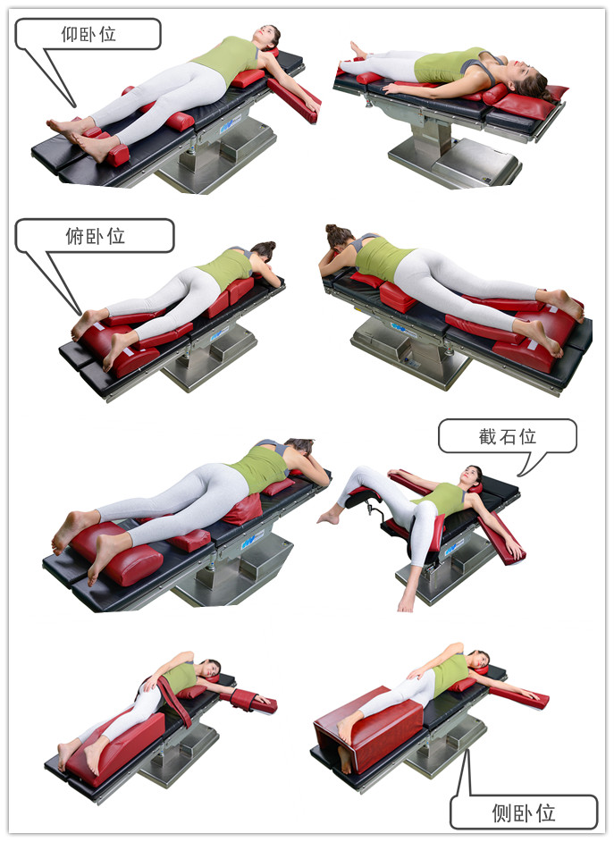 3、俯臥位:高碗頭圈、胸墊、髂脊墊、凹形體位墊、俯臥位腿墊;